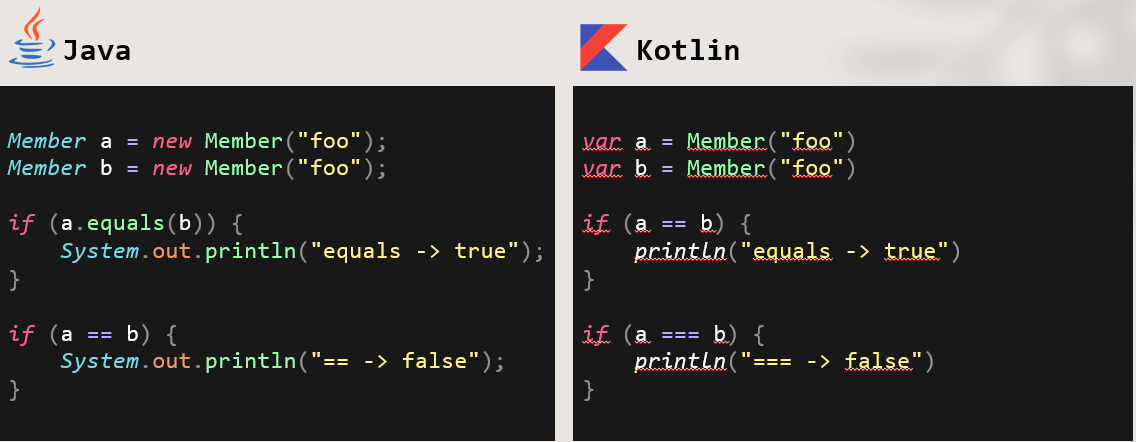 언어에 관련된 좀 더 많은 내용은 뒤로하고 실제로 자바 와 코틀린 코드를 비교해 코틀린의 매력을 코드로 직접 느껴보자.