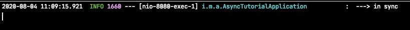 출력된 로그 문자열(---> in sync)로 확인할 수 있듯이 브라우저에서 아무리 요청을 많이 보내도 10초에 한번씩 출력된다. tomcat 의 max threads 숫자를 높이면 해당하는 숫자만큼 동시 처리가 가능할 것이다.