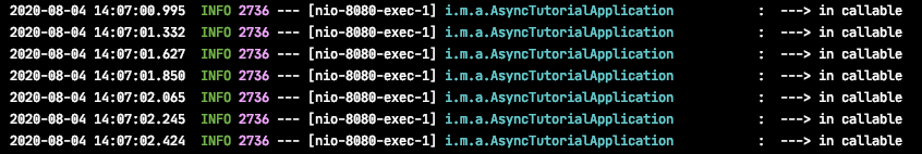 10초에 delay 타임이 있기 때문에 응답이 바로오지는 않지만 로그를 확인해 보면 요청이 올때마다 바로 메서드에 진입하는걸 확인할 수있다. 처음에 Node.js 가 세상에 나오면서 Java Servlet 에 비교해 빠른 응답과 많은 처리량을 할 수 있던 차이점이 이와 비슷한 맥락이다.