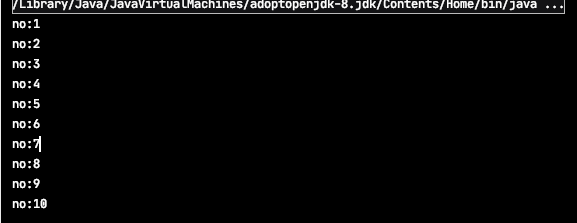 아래는 2초 간격으로 1부터 10까지 숫자를 출력하는 쓰레드를 Run으로 실행하는 코드이다. Run메서드를 실행해도 결과는 잘 나온다.