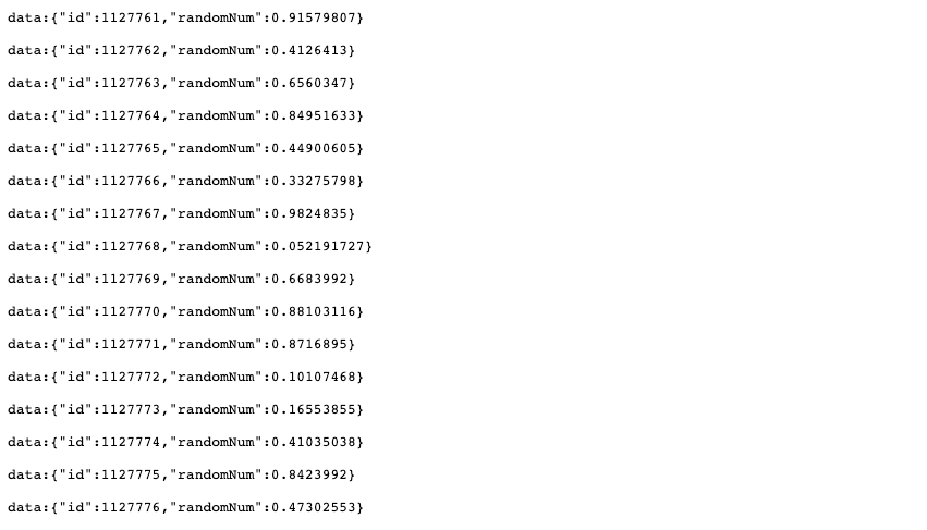 라인이 중요한데 Media Type을 SSE(Server Send Event) 선언하는 부분이다. 이렇게 선언해야 1천만건의 데이터를 웹에서 즉각적으로 받을 수 있다. Server Send Evnet 에 대한 자세한 내용은 아래 링크를 참고하면 된다.