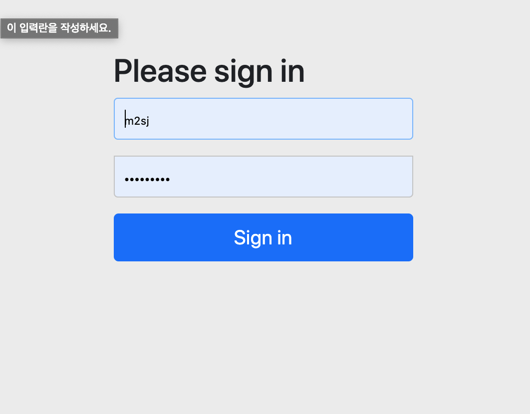 application.yml(properties) 파일에서 기본 로그인폼에 로그인 아이디와 비밀번호를 변경할 수 있다. 설정후 재기동을 하면 애플리케이션 로그에 자동으로 생성된 패스워드가 보이지 않는다. 변경한 로그인 정보를 입력하면 정상 로그인 처리되고 my-page 에 접근할 수 있다.